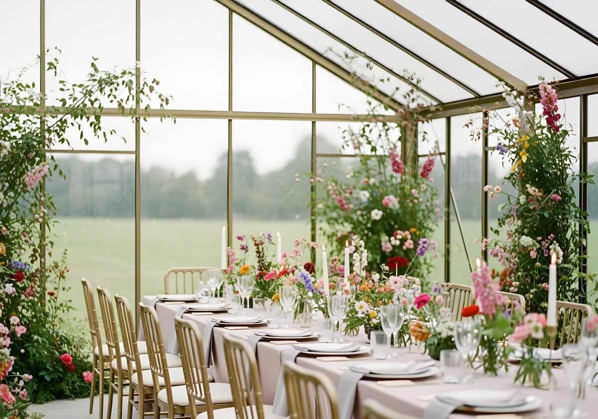 From pastel blooms and lush greenery to vintage garden accents and whimsical details, a greenhouse or outdoor garden setting creates a naturally beautiful backdrop that feels fresh, timeless, and full of life. Guests are instantly put at ease in such a welcoming, open-air environment, making the celebration feel intimate yet full of joyful energy. It’s a theme that works effortlessly in spring or summer, and its delicate floral touches can even be adapted for indoor venues to bring the outdoors in.