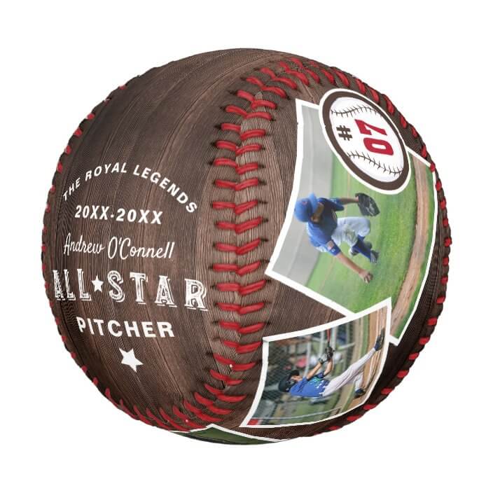 All-Star Woodgrain Player Number & Photo Collage Baseball