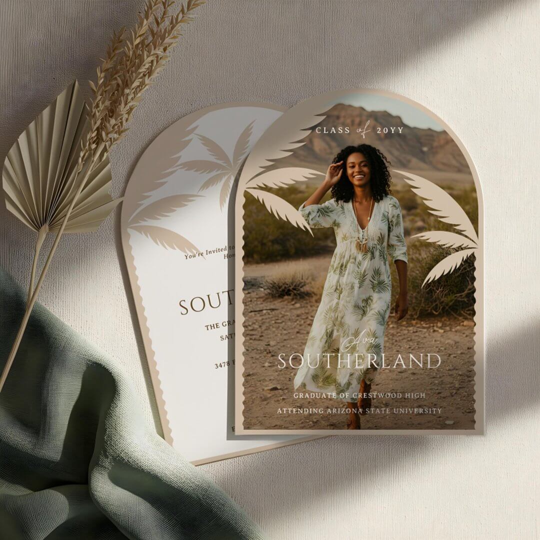 Boho Retro Tropical Palm Tree Graduation Photo Arch Invitation