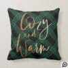 Cozy & Warm | Green Buffalo Plaid Deer Monogram Throw Pillow