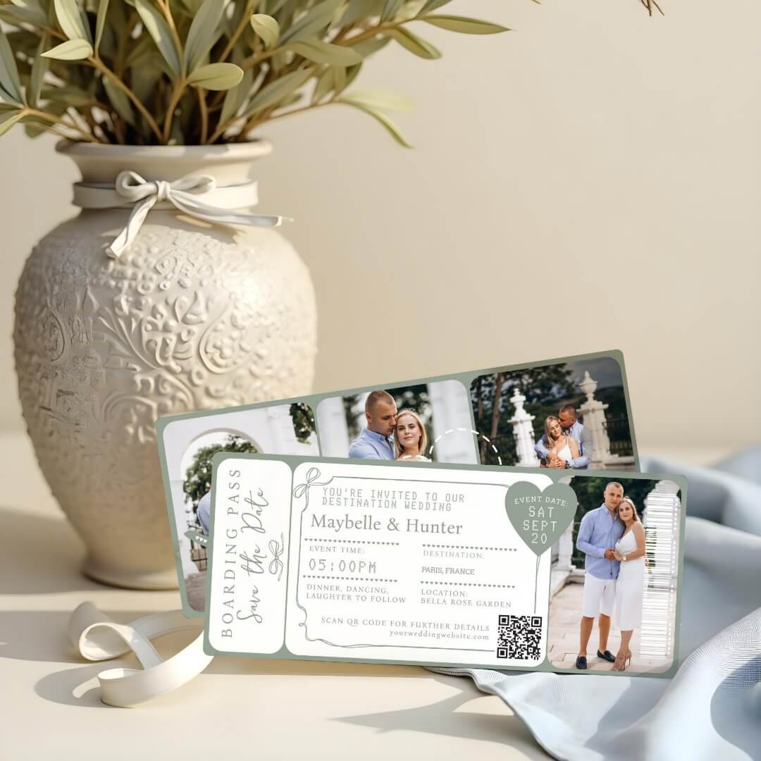Destination Wedding Boarding Pass Green Plane Ticket Invitation