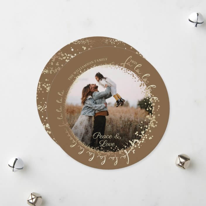 Fa La La Magical Gold Christmas Carol Song 1 Photo Holiday Card Brown