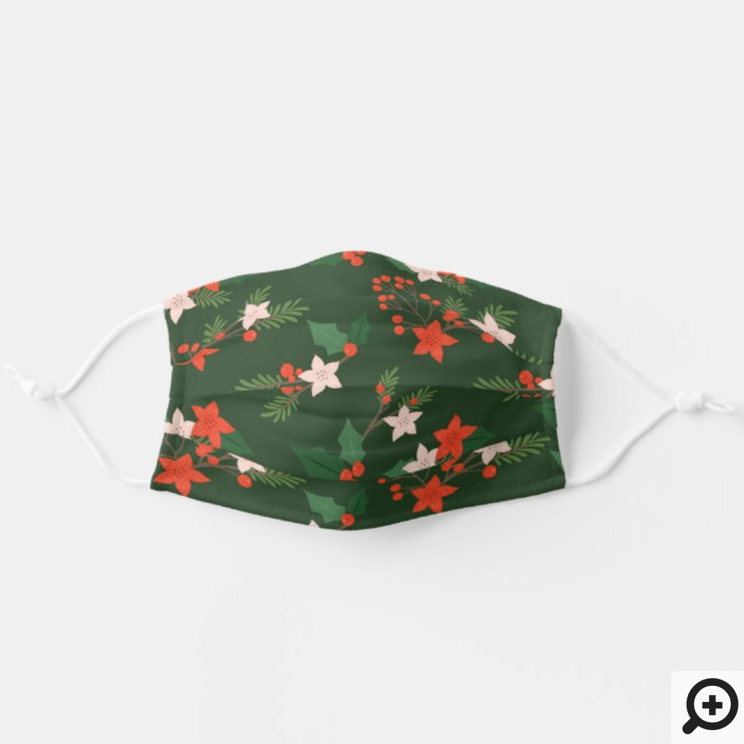 Festive Hollies, Berries Christmas Greenery Green Adult Cloth Face Mask