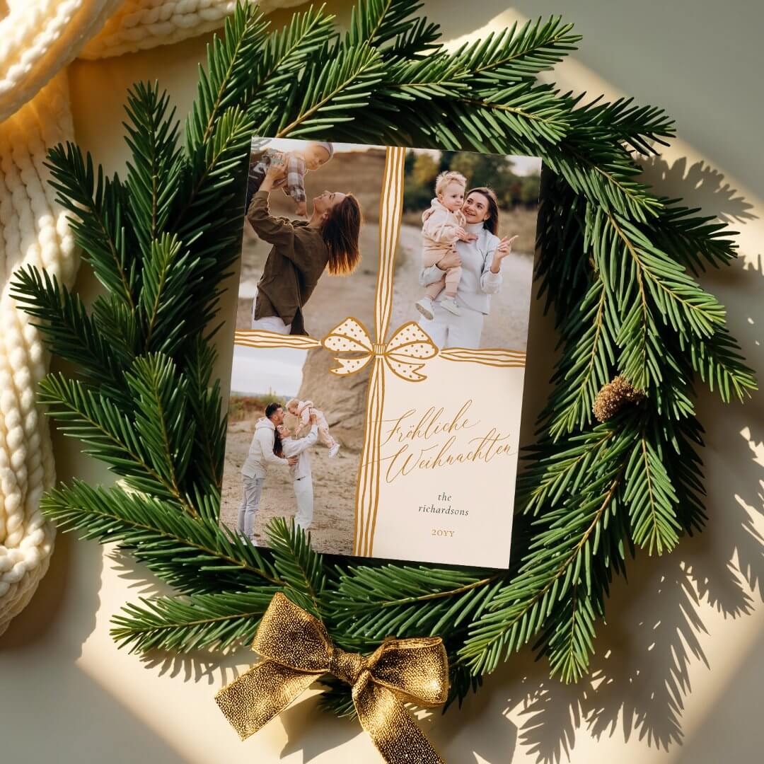 Fröhliche Weihnachten Elegant Holiday Golden Bow Photos