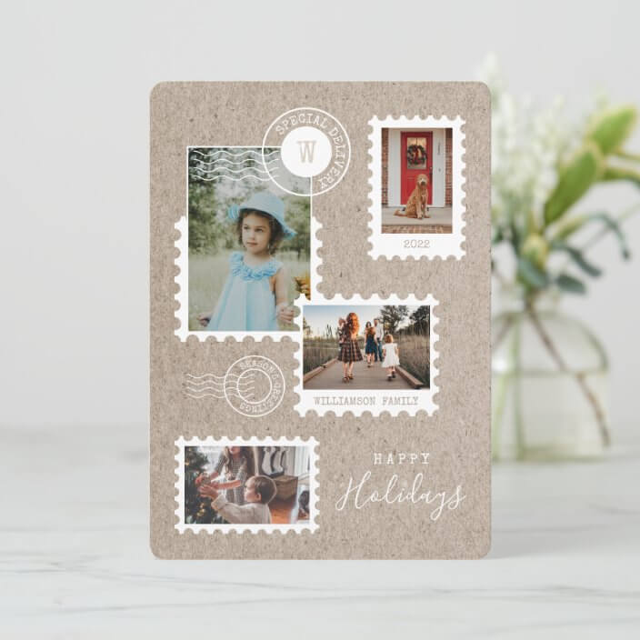 Fun Special Delivery Postage Stamps Photo Collage Holiday Card