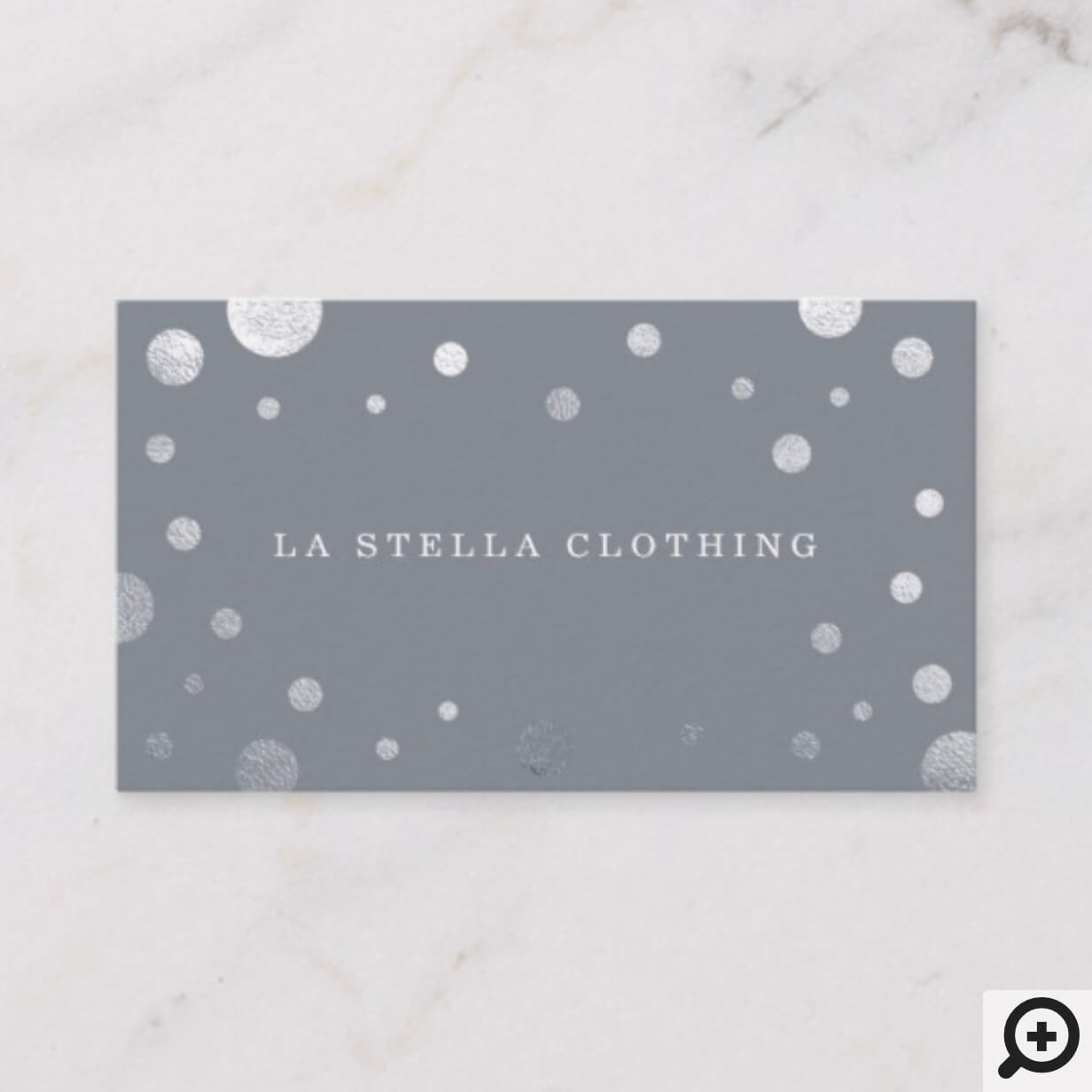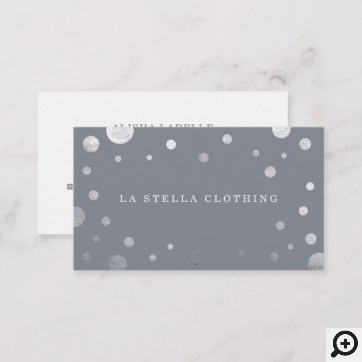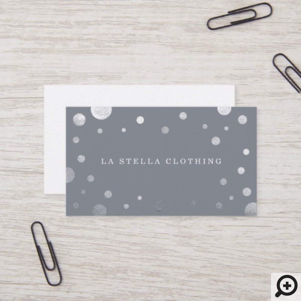 Grey Feminine Chic Silver Confetti Polka Dot Business Card