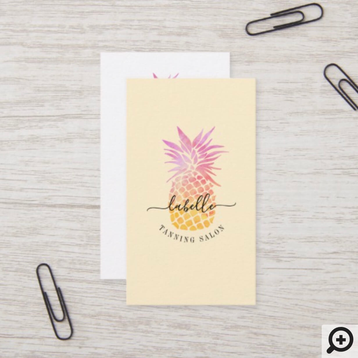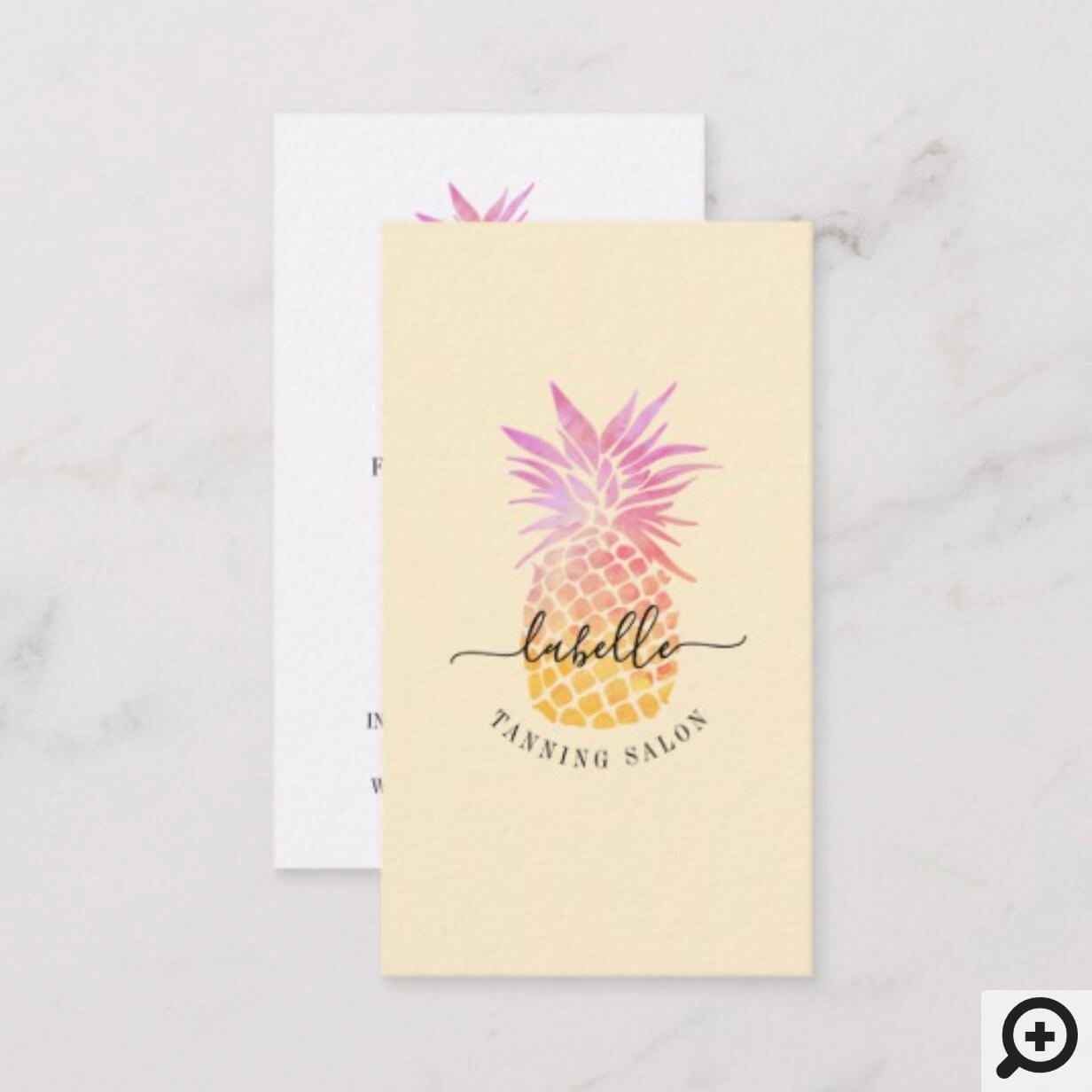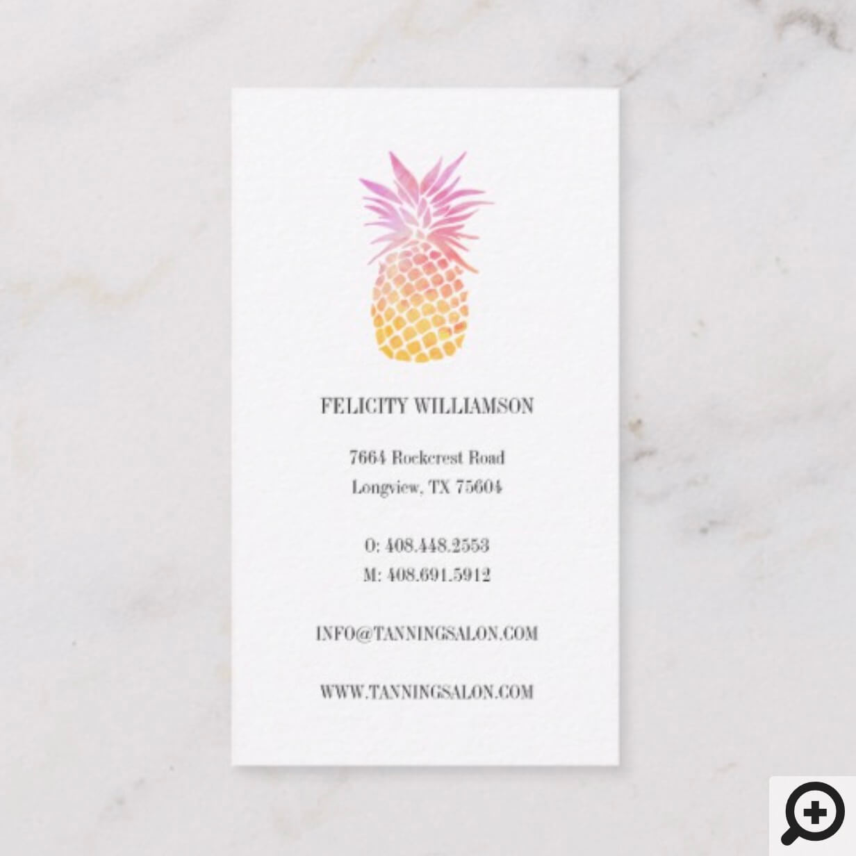 Orange & Pink Watercolor Tropical Pineapple Fruit Business Card