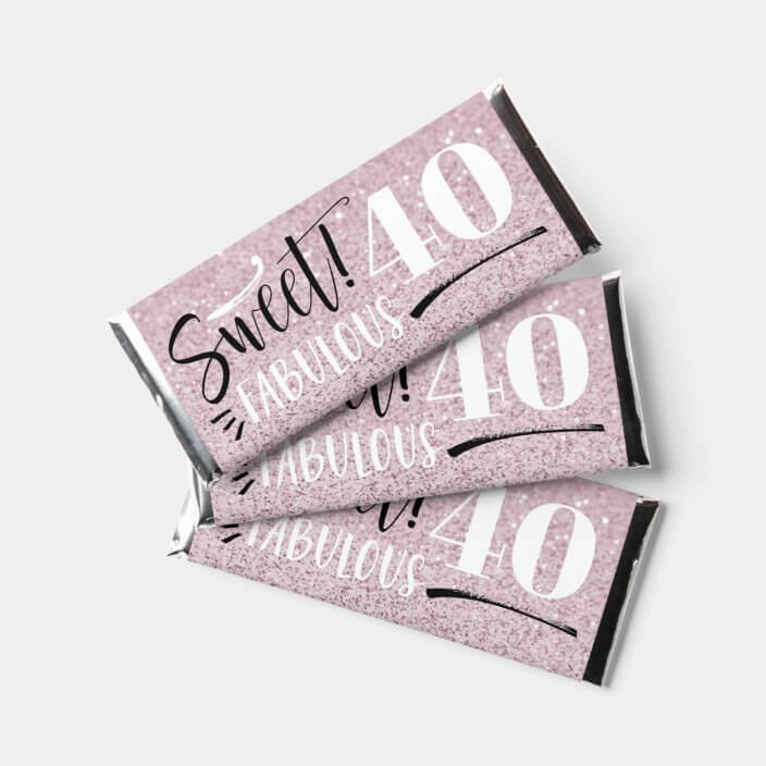 Sweet Fabulous Birthday Age Rose Gold Glam Sparkle Hershey Bar Favors