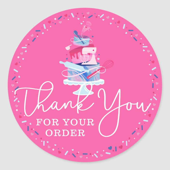 Thank You For Your Order Fun Bakery Cake & Tools Classic Round Sticker Pink